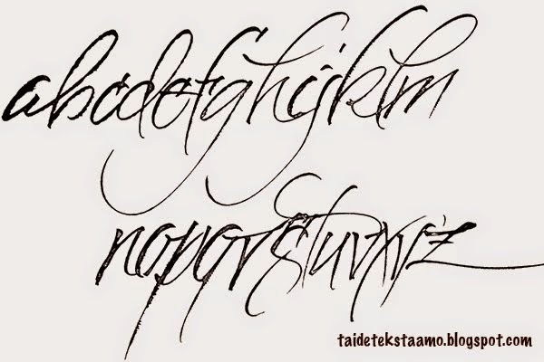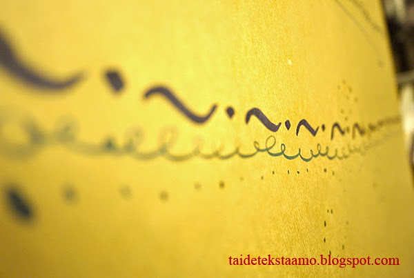pensselillä kirjoitus. Jätä rivien väliin tilaa reilusti.
